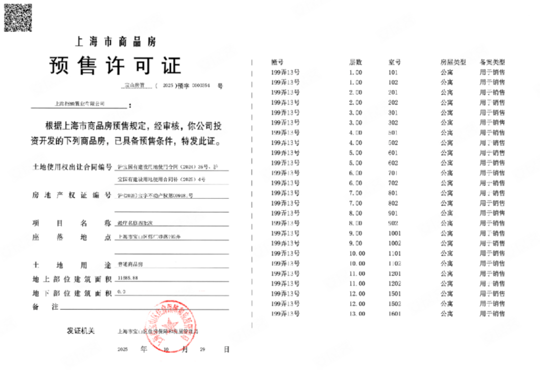 宝山房管(2025)预字0000354号 | 2025-10-29 | |