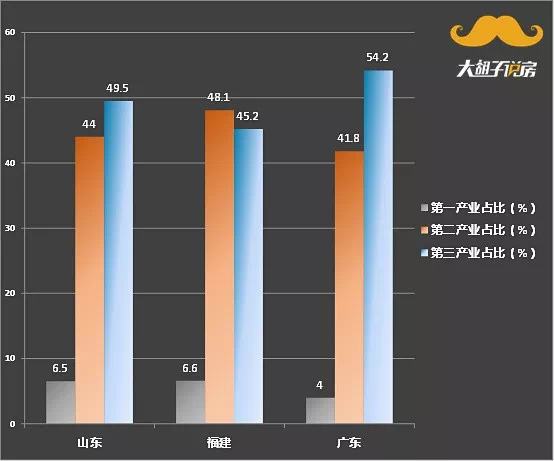 总之,这三个地方有着较好的经济情况和较高的人口活力,未来有着乐观的经济发展前景,对比三者的产业结构更能发现,广东第三产业占比高达54.2%,产业结构较其他两者更为健康,未来依旧会保持中国经济的领头羊地位。
