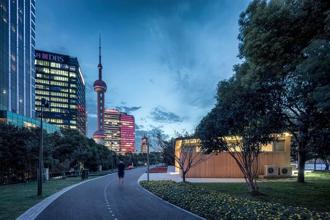 驿站所在场地背靠陆家嘴连绵的摩天楼群,隔江与老外滩及北外滩对望,是上海市中心的一处关键性公共空间。这一微小的驿站,使得我们有机会探讨超越其自身尺度的建筑与风景的关系。我们希望驿站在以平易近人的氛围服务市民的同时,更能够强化这块场地自身的特性,从而让建筑有机会成为风景的放大器。“望江驿”这一命名正凸显了驿站的双重述求。