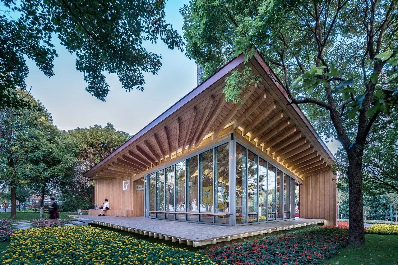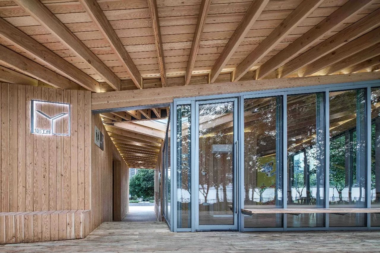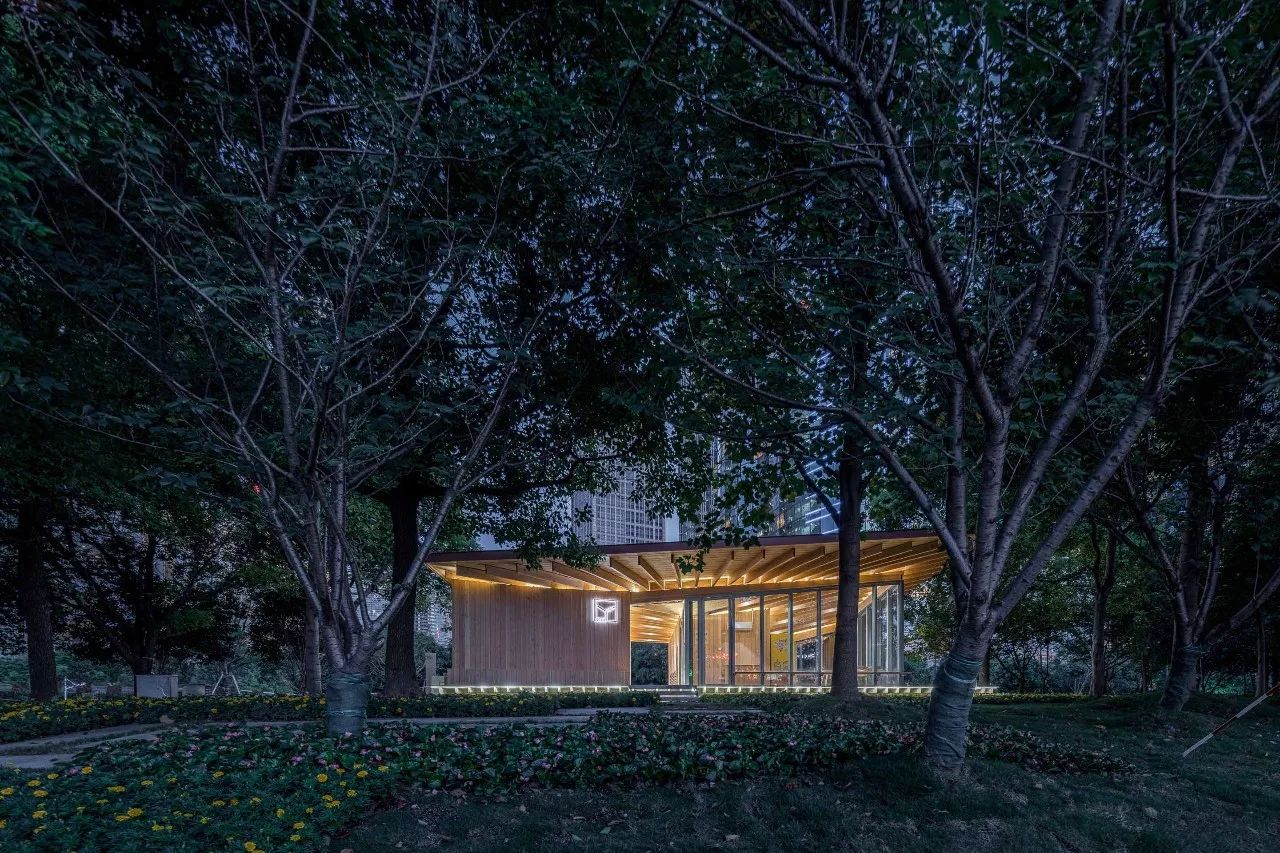 为了平衡一个月的极短工期和对于完成品质、空间体验的较大诉求的矛盾,并兼顾施工场地局促,以及控制车库顶板上的结构重量等问题,设计采用了以胶合木结构为主的钢木混合体系来快速建造,工厂预制化率较高,现场基本为干作业施工,对环境影响很小。