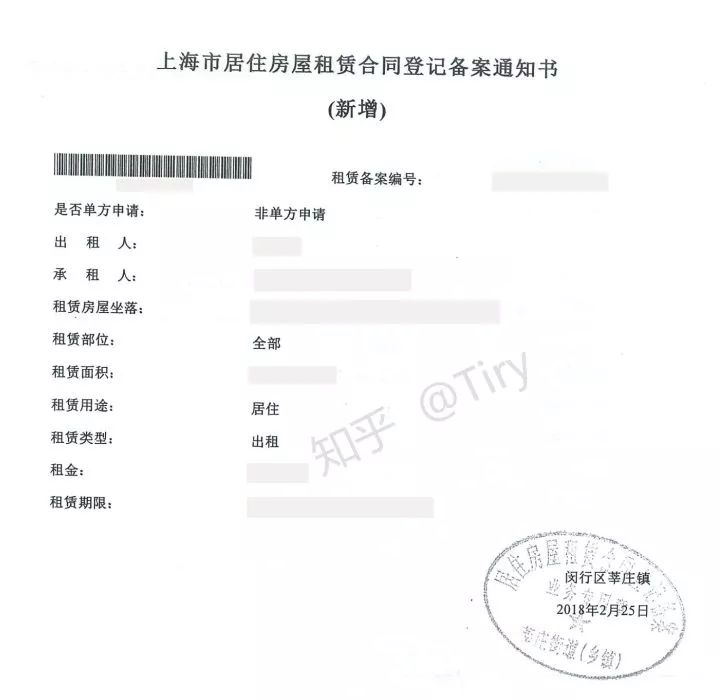 现场录入申请信息,出具《上海市居住房屋租赁合同备案通知书》完成备案。