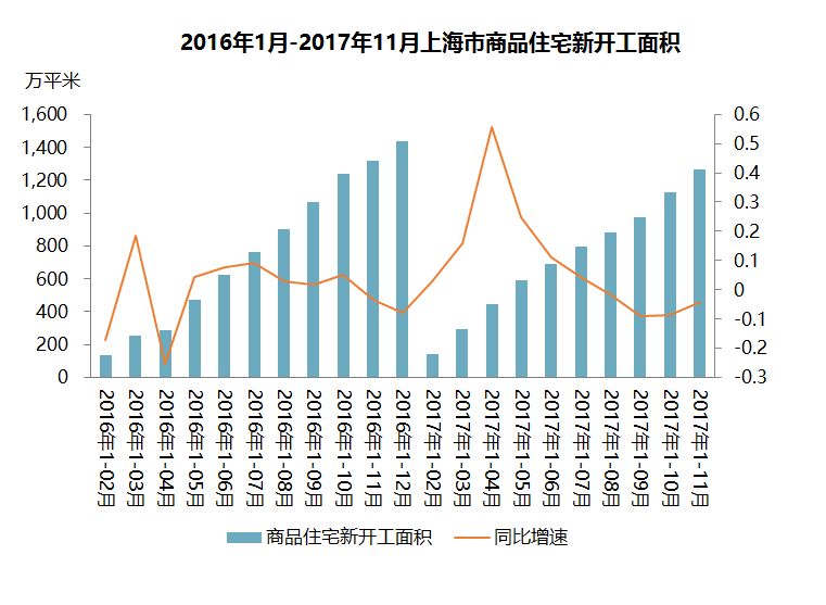 上海商品住宅市场开发投资额与新开工面积同比增速出现分歧
