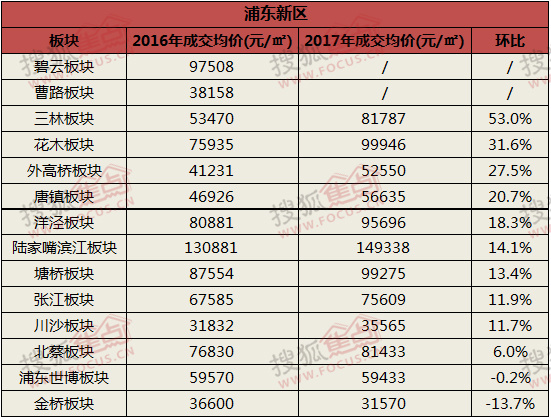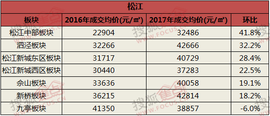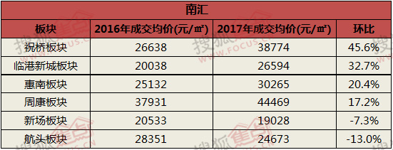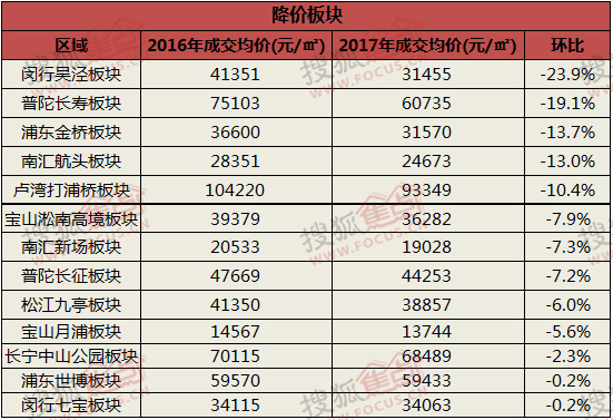 最后,奉上2017年新房成交均价有下跌的板块:13个!