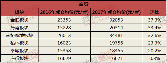 上述13个板块2017年成交均价有所下跌,实际上或许是由于供应量、供应产品类型等有差异,造成板块整体成交均价呈下跌趋势。