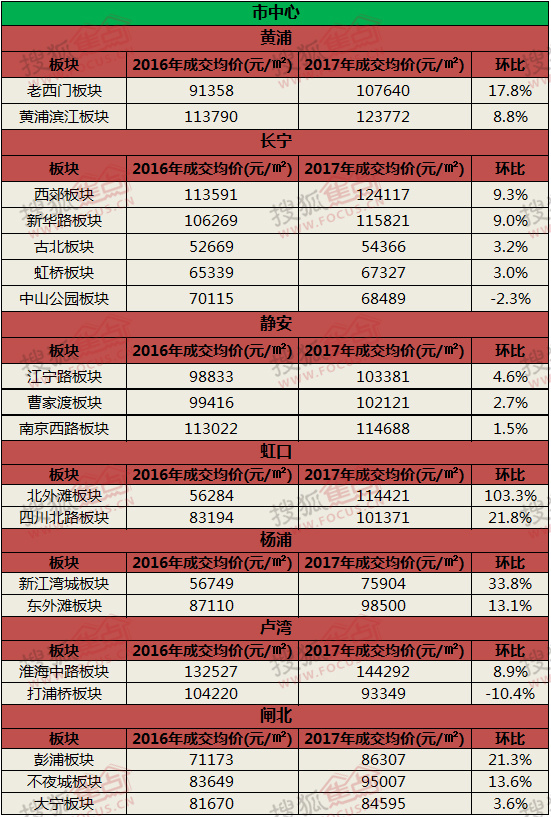 今天,小编继续呕心整理了一份上海全市超100个板块的房价2016年和2017年的成交均价,一起来找找你家所在的板块在这一年里房价涨了多少吧!