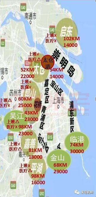 同样,环沪也有“北三县”,如图,应该就是与上海接壤的排名前列圈层县级市中的江苏省启东市、太仓市和昆山市,从这三个县级市人民政府驻地到上海市中心人民广场的行车距离分别为(启东)102公里、(太仓)52公里、(昆山)60公里。