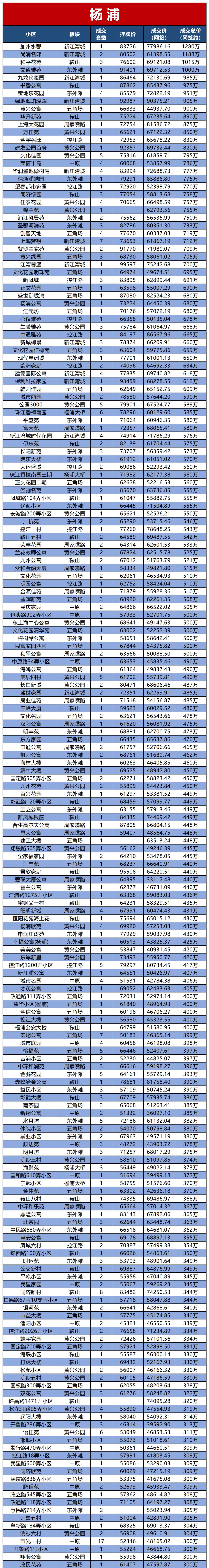 9月上海二手房价大全