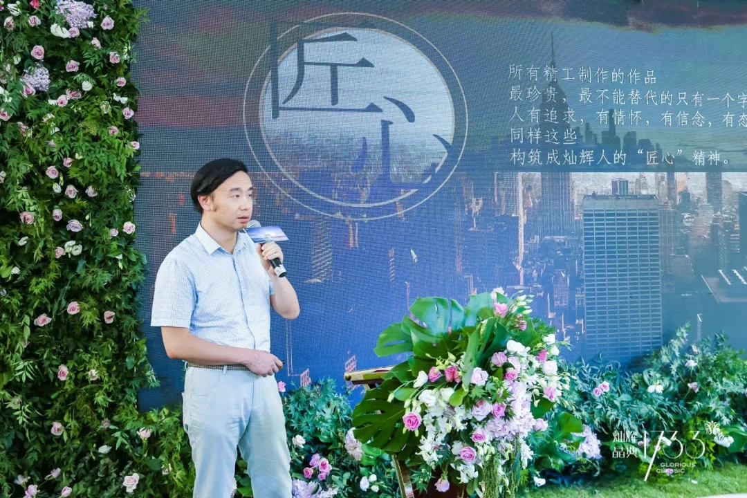 灿辉集团总工程师兼设计总监肖军先生上台详细阐述了灿辉晶典1733的核心位置、生态景观价值以及其在市场上独特的竞争优势。