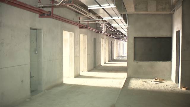 目前,项目结构已封顶,内墙粉刷已完成