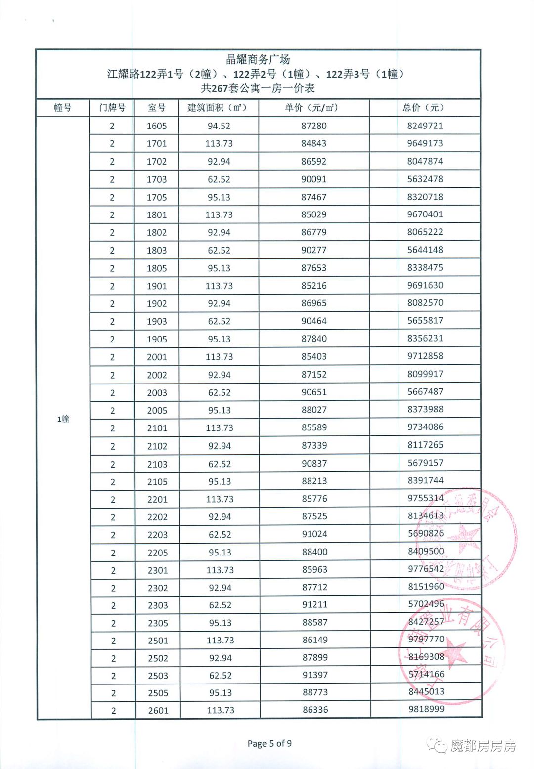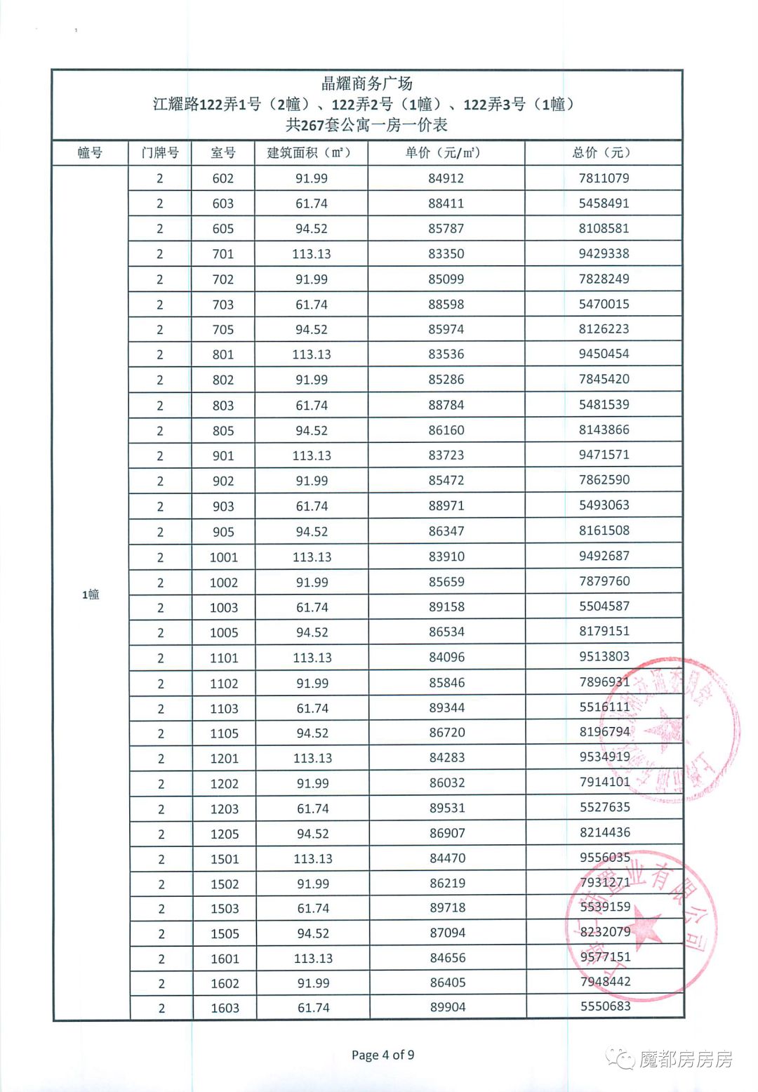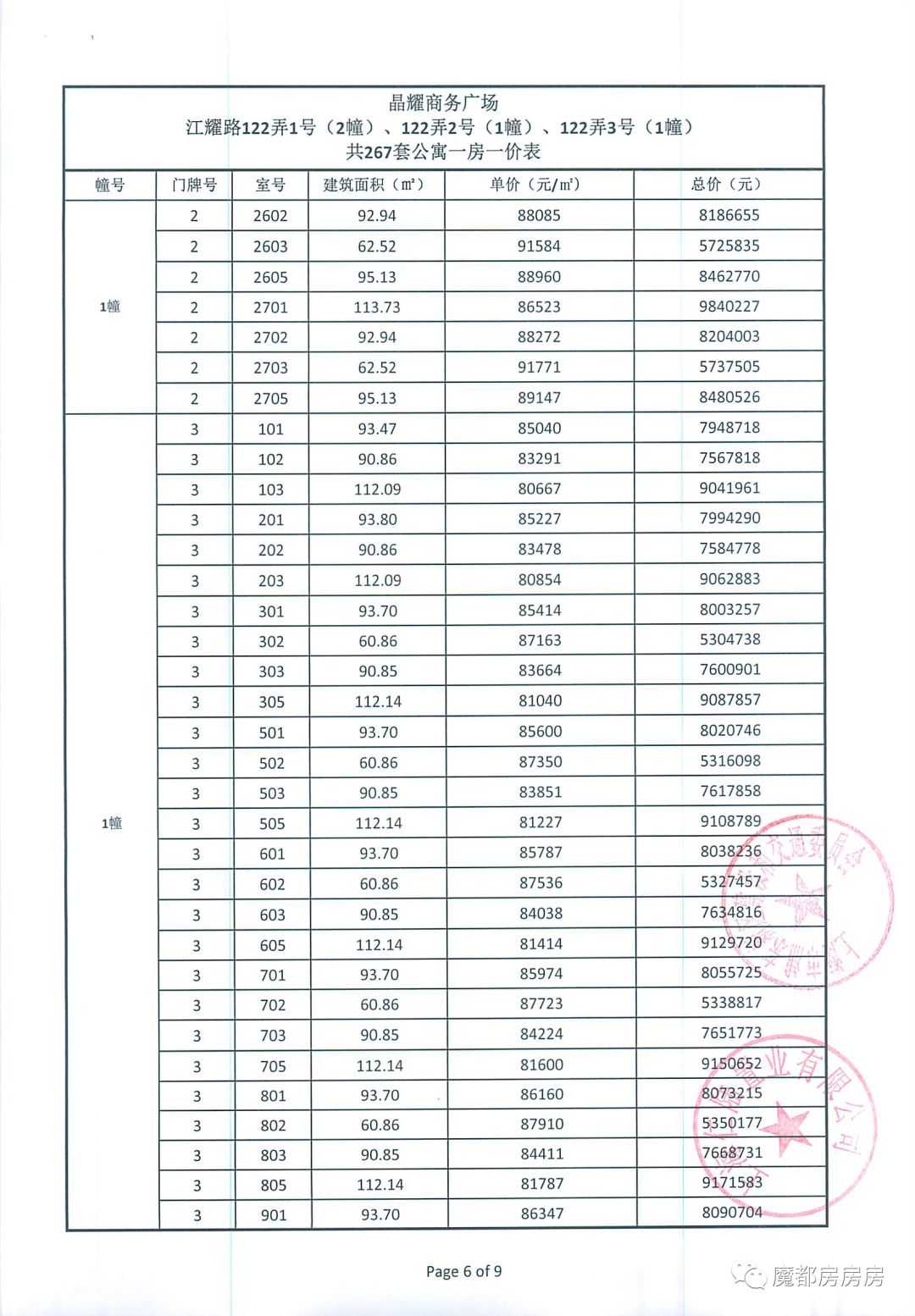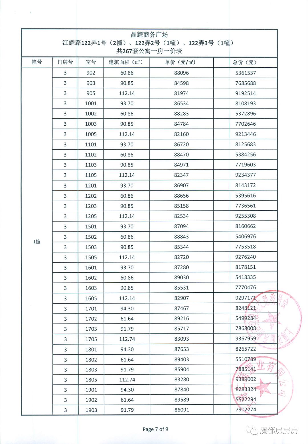 本次晶耀名邸二期均价8.57万元,看看一房一价表: