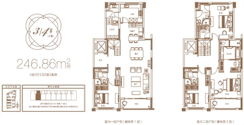 ▲建面246.86㎡上叠户型图 4室2厅4卫2厨3套房