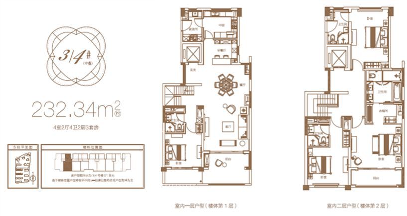 ▲建面232.34㎡中叠户型图 4室2厅4卫2厨3套房