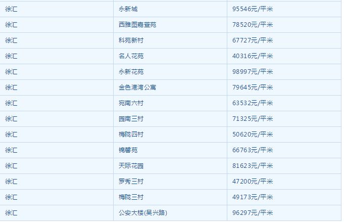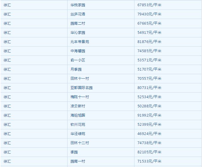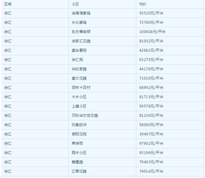 上海徐汇区的较新二手房房价,你看看你住的小区或者你家的房价多少呢?