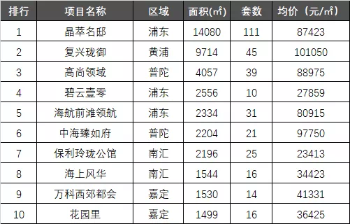 长久以来,黄浦新入市房源较少,而近期开盘的复兴珑御上周成交了45套,成交面积9714㎡,位列成交排行榜第二位,该项目成交均价101050元/㎡。