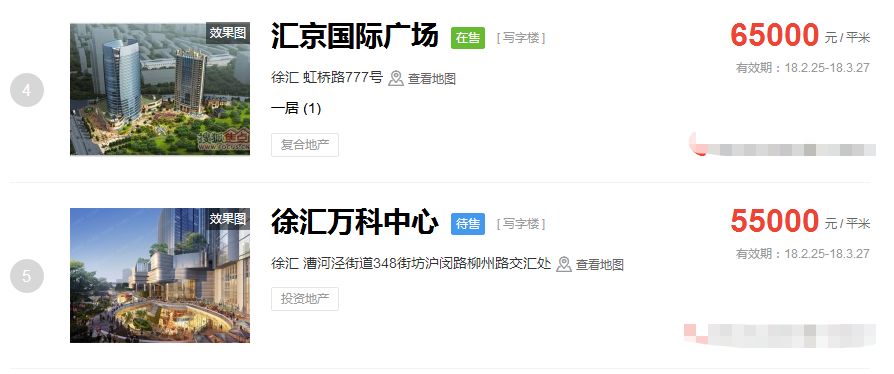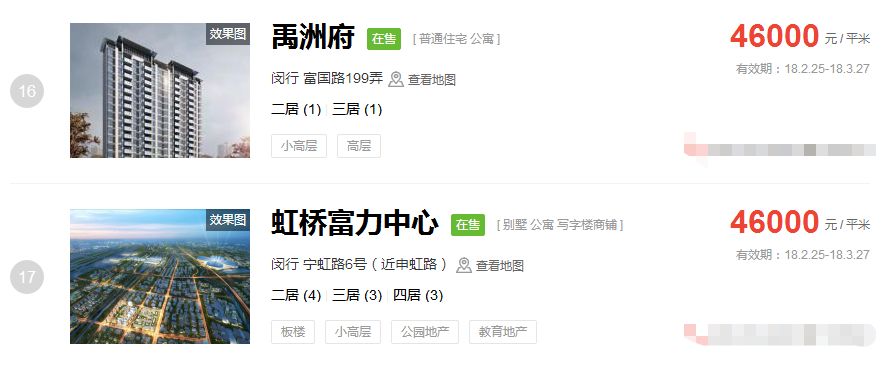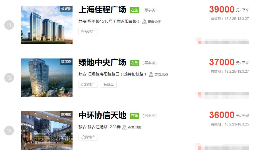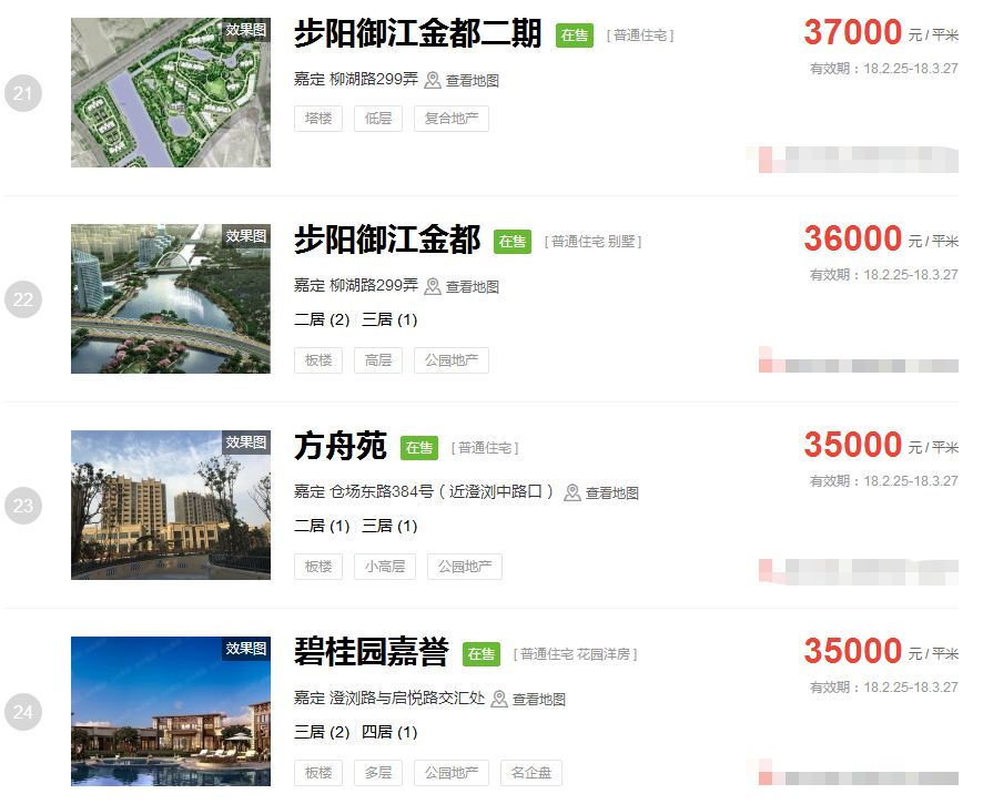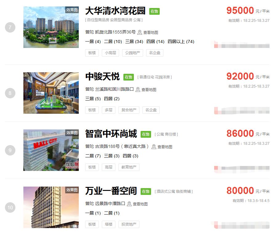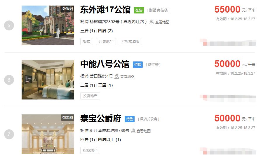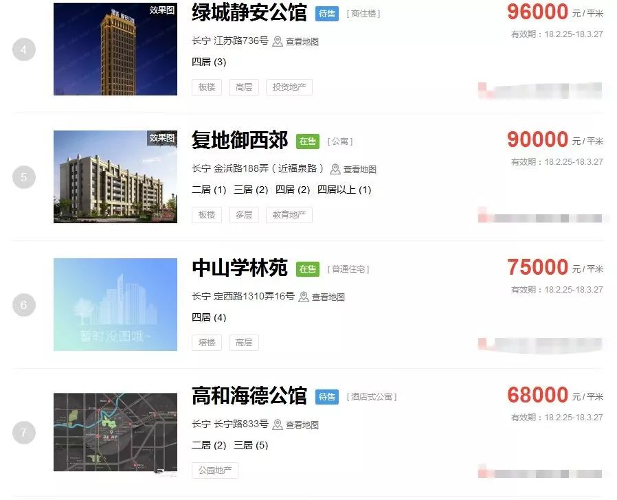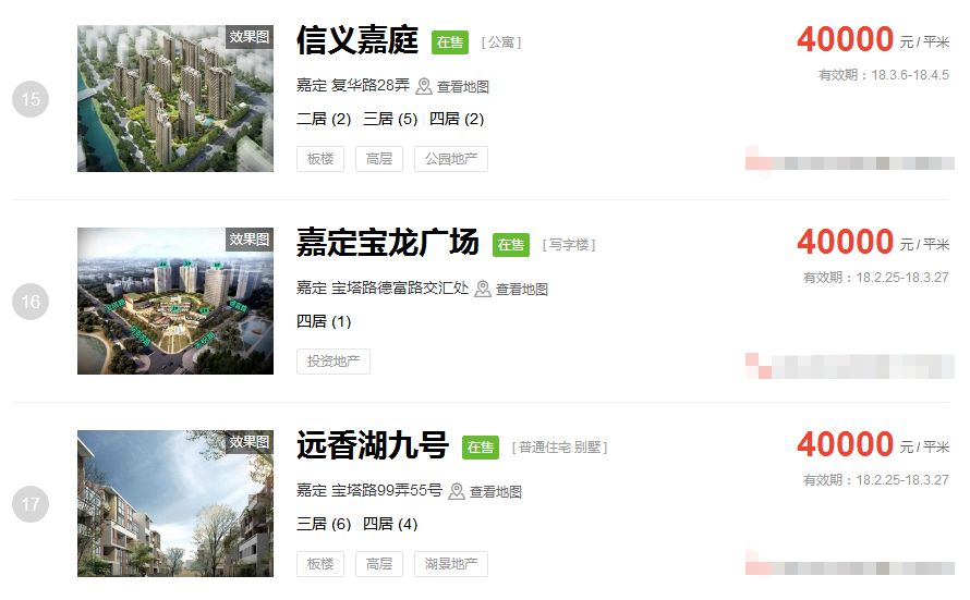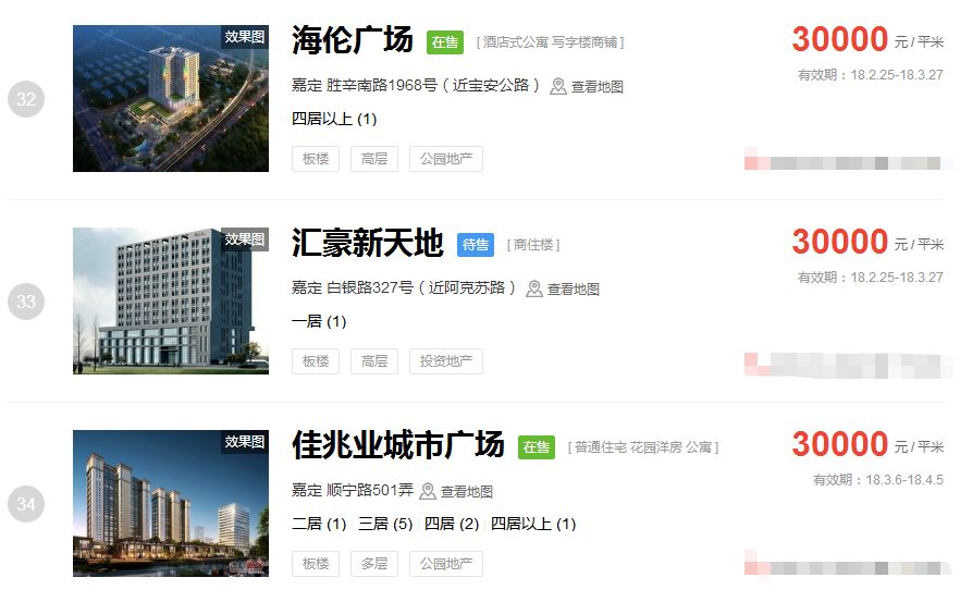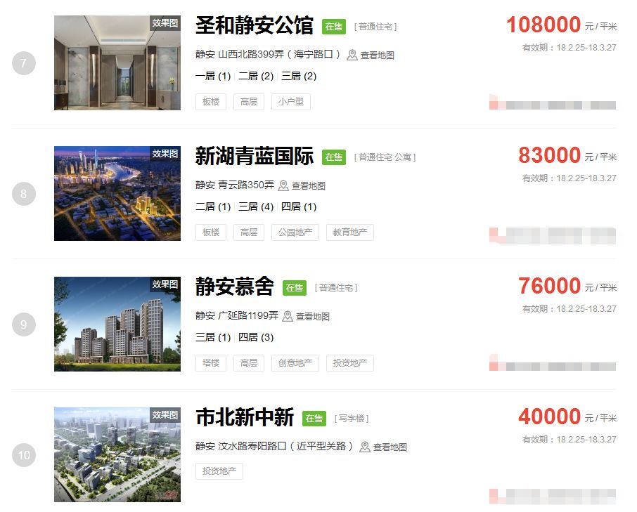 占据上海新房房价排行榜前三的价格
