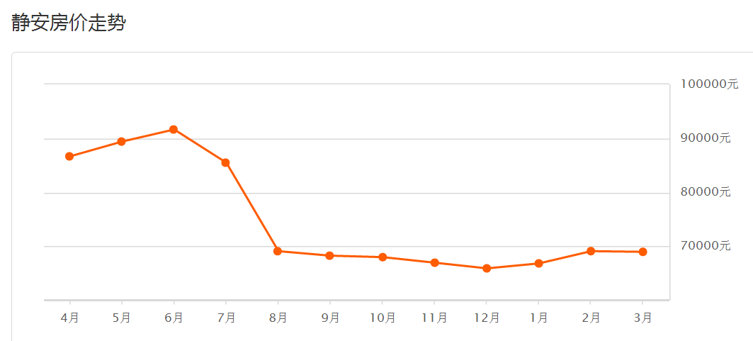 静安3月二手房均价 68968 元/m²