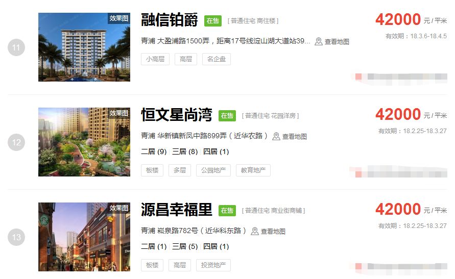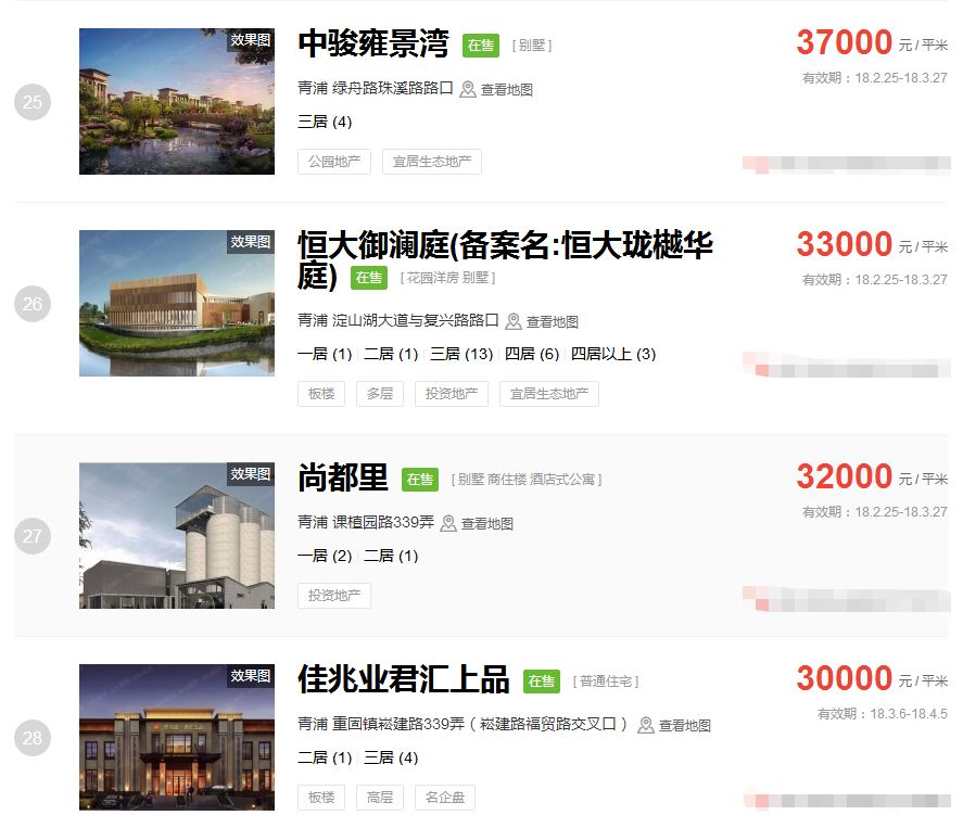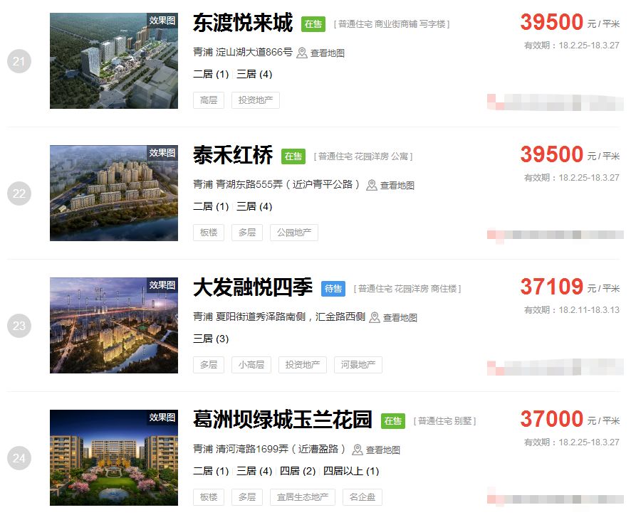 青浦2月二手房均价 31917 元/m²