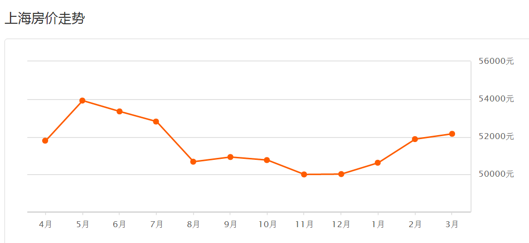上海3月二手房均价 52154 元/m²