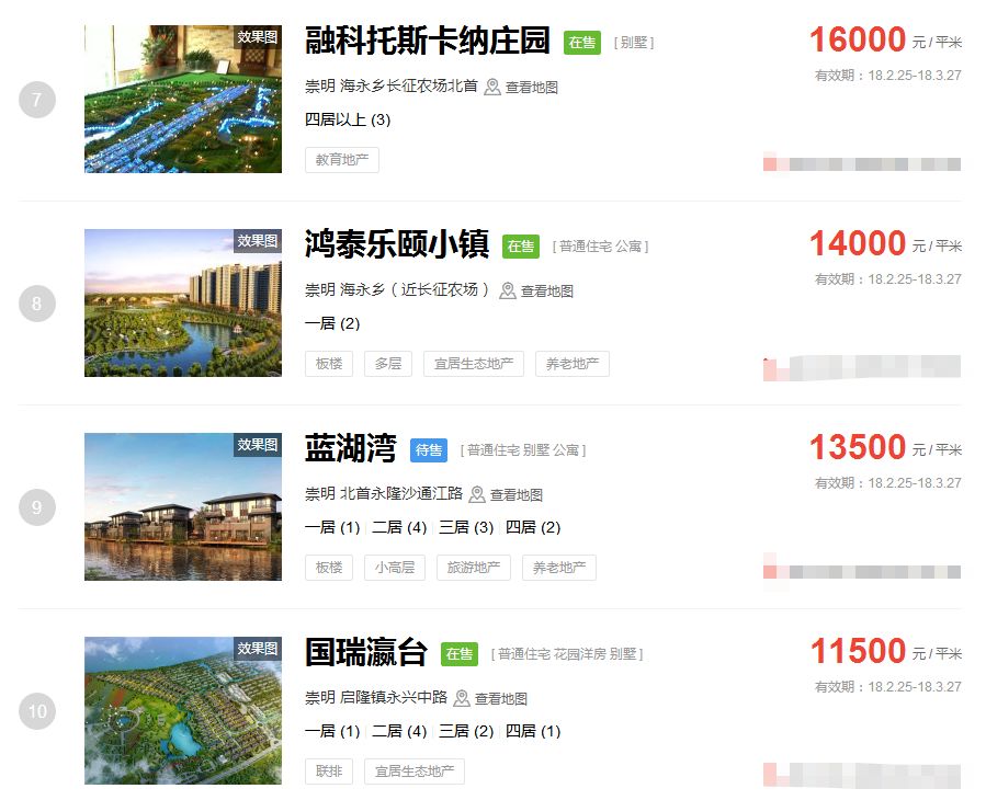 而成交量较高的则是位于崇明的