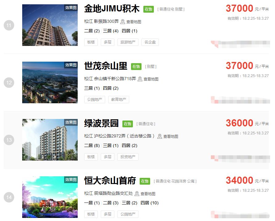 松江3月二手房均价 34504 元/m²