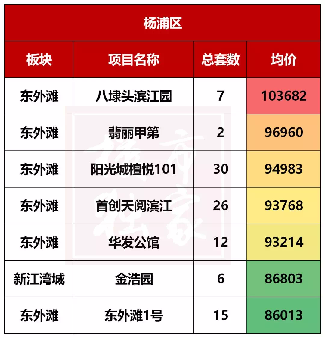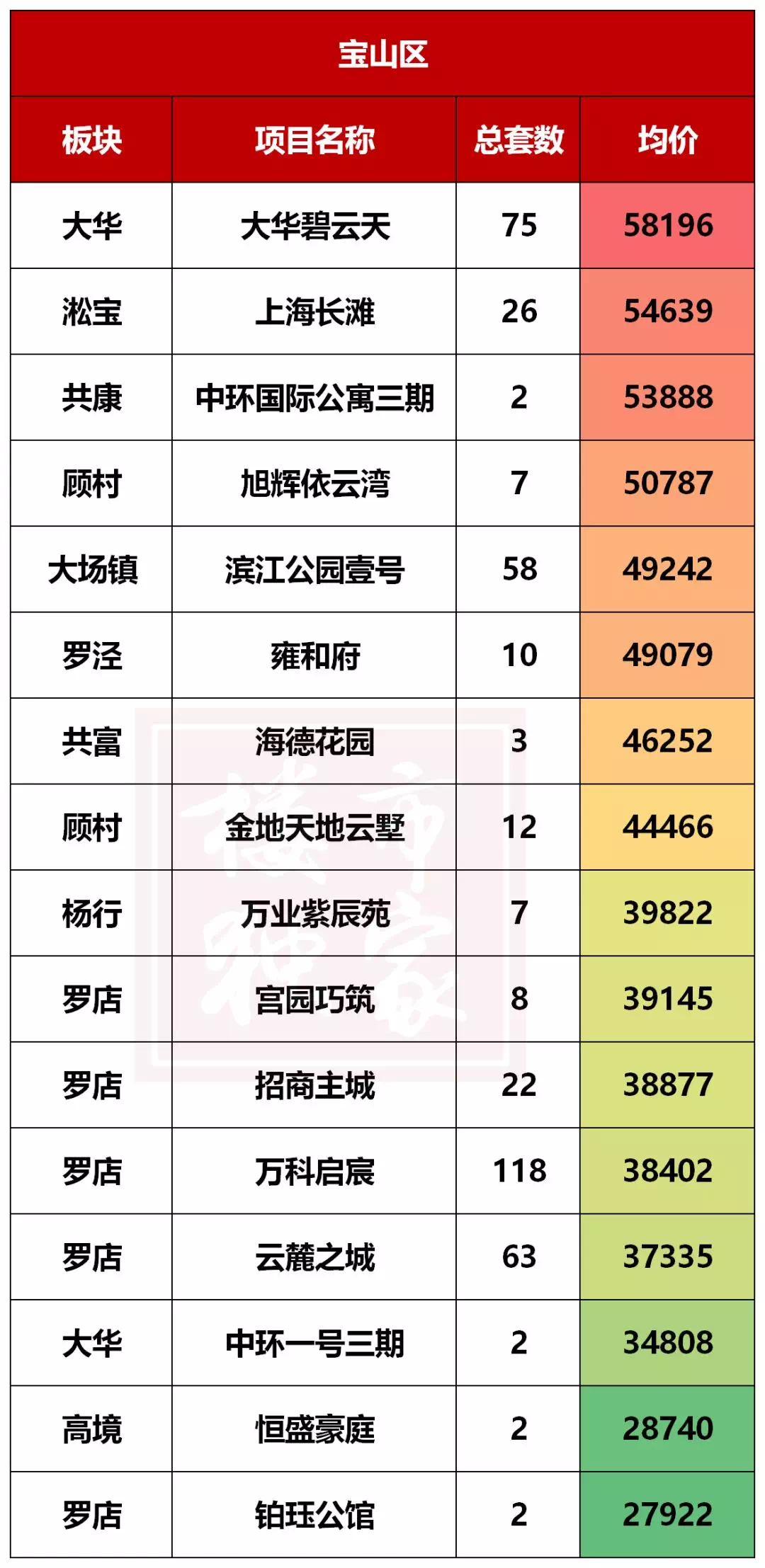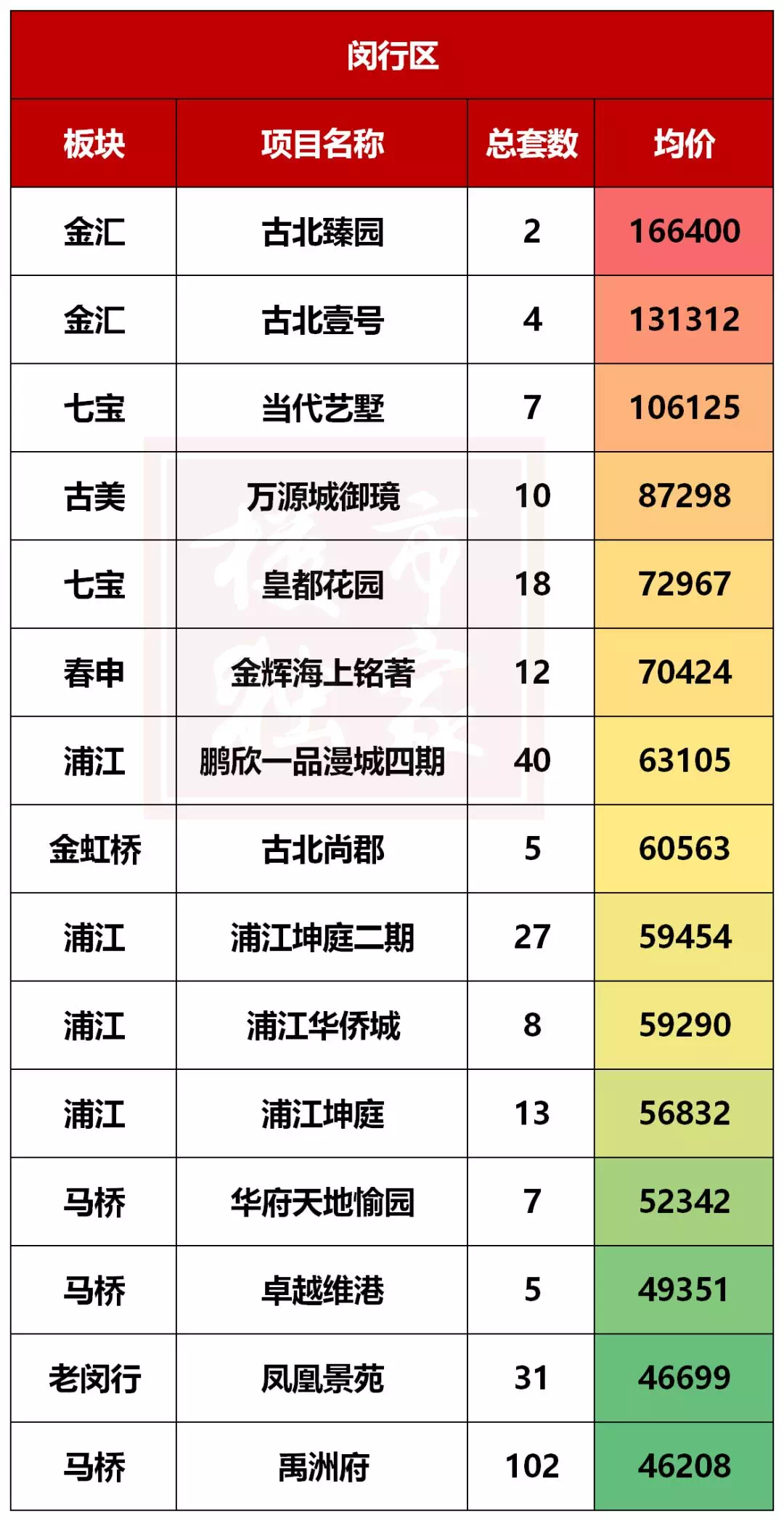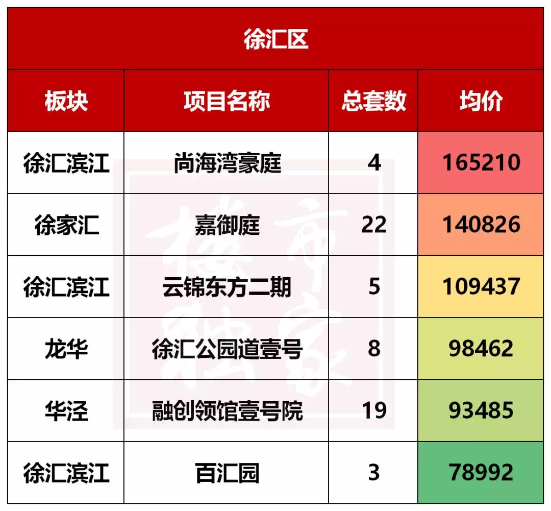 2. 各列颜色越红、数字越高;颜色越接近绿色、数字更低,点击图片可以缩放查看大图。不排除由于网签时间滞后带来价格滞后的可能,实际目前销售价格详询售楼处。不排除项目登记案名与实际销售案名不符的可能。销售套数越多,价格数据越有代表性。