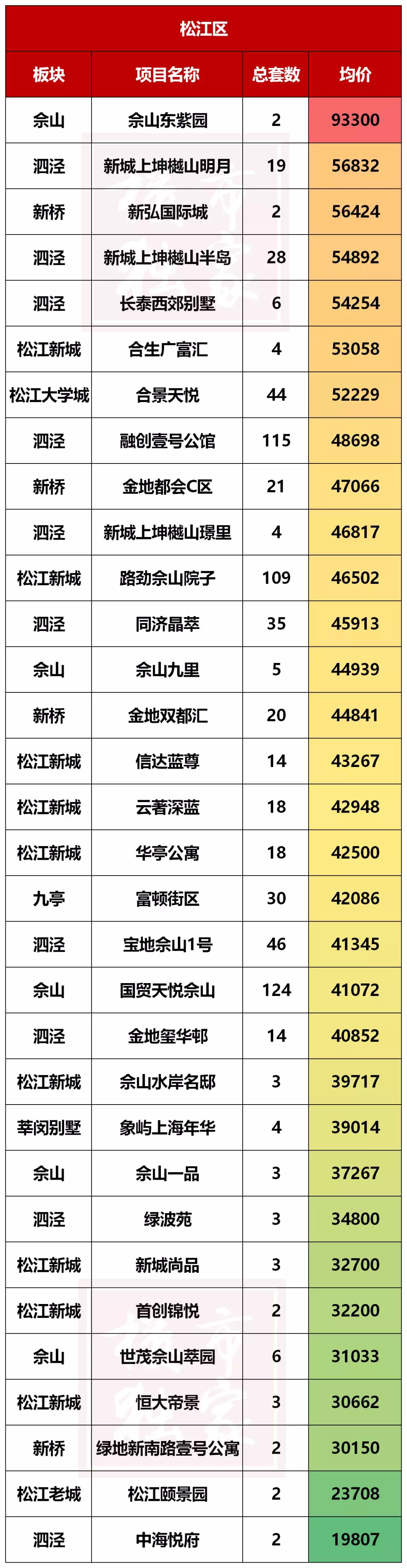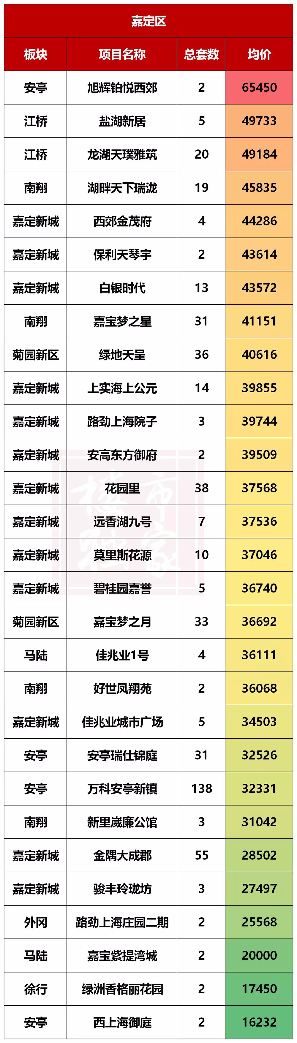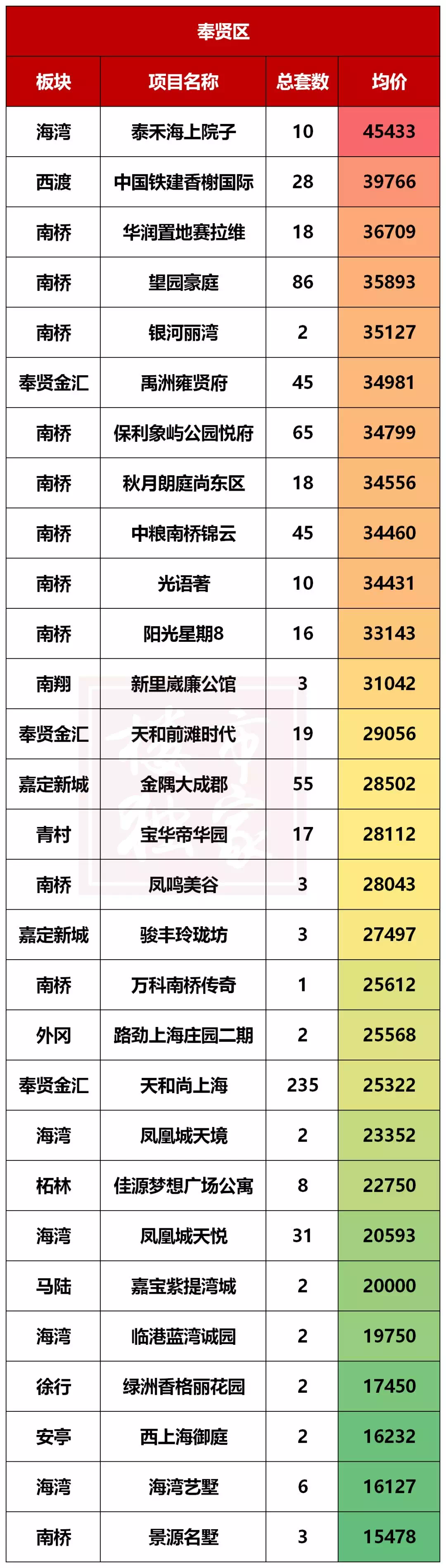 2. 各列颜色越红、数字越高;颜色越接近绿色、数字更低,点击图片可以缩放查看大图。不排除由于网签时间滞后带来价格滞后的可能,实际目前销售价格详询售楼处。不排除项目登记案名与实际销售案名不符的可能。销售套数越多,价格数据越有代表性。