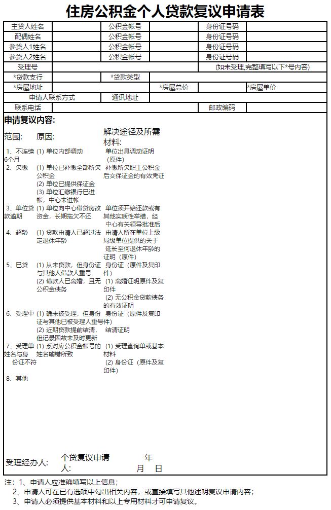 需要填写住房公积金个人贷款复议申请表