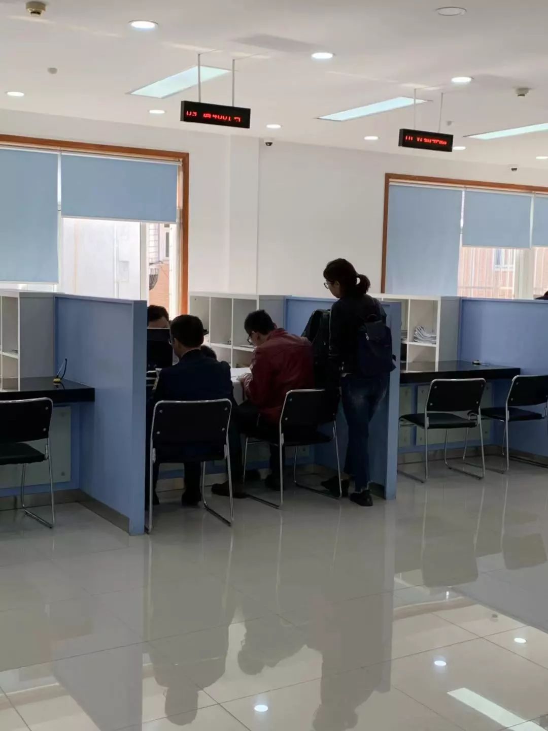 门口通过身份证领取号码条之后,等着叫号就行。
