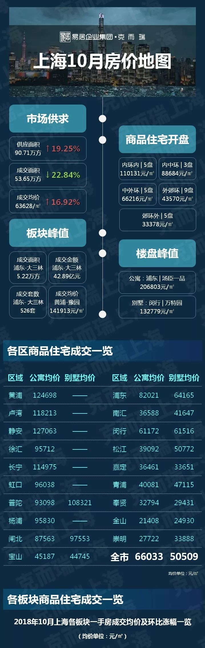 与此背道而驰的则是成交价格。虽说楼市整体成交量有些感人,但由于九庐、九龙仓滨江壹十八、八埭头滨江园、静安府、宝华城市之星、徐汇公园道壹号、阳光城檀悦101、建邦16区等豪宅的接力入市,10月上海新房价格迎来新高突破6W/㎡,再度刷新历史记录。