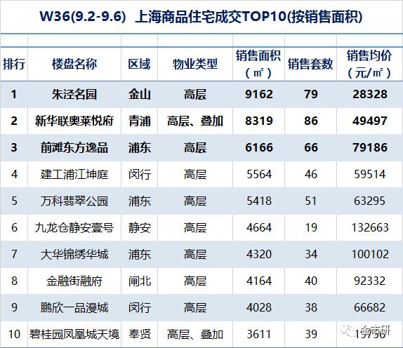 上海住宅成交TOP10(销售面积)