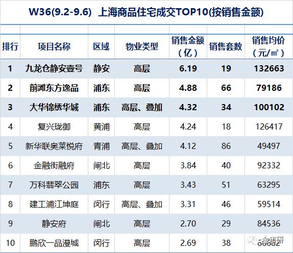 上海住宅成交TOP10(销售金额)