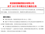 欧派家居集团股份有限公司于12月1日发布2025年中期分红方案。根据方案,公司拟向全体股东每股派发现金红利1.24元(含税)。截至2025年11月28日,公司总股本为6.09亿股,扣除回购专用证券账户持有的3…