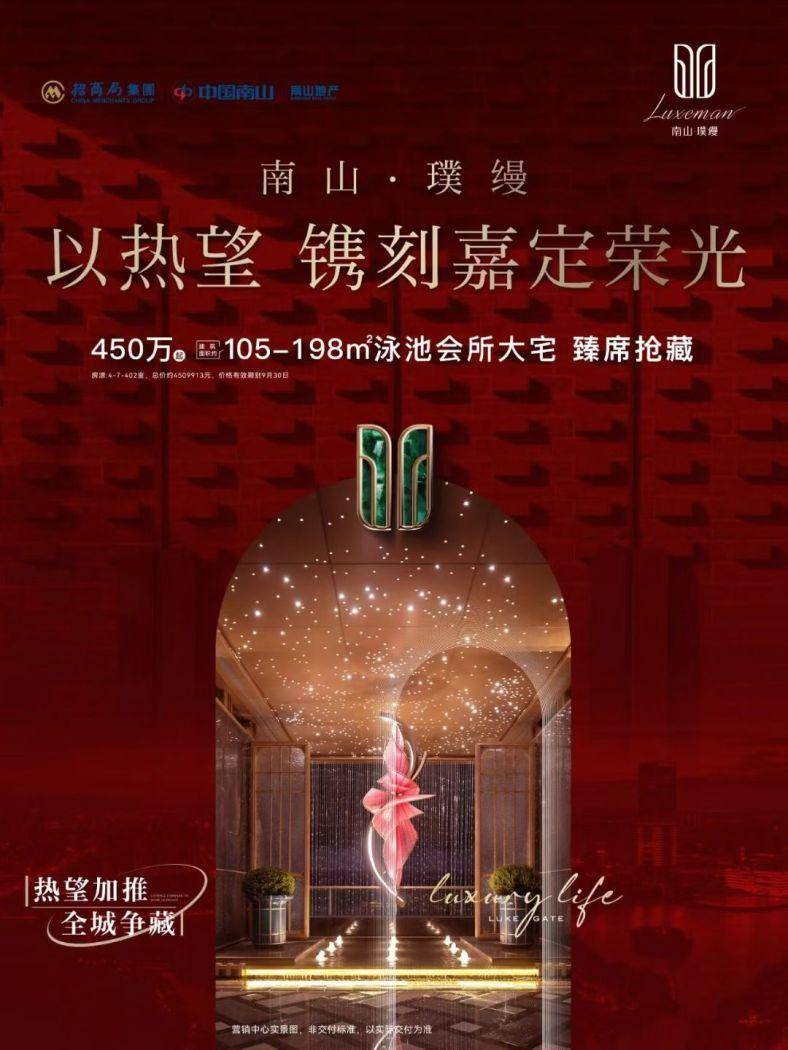 南山·璞缦,是南山地产布局嘉定的战略作品,位于嘉定主城区板块,立于南门之上远见烫金一英里至贵生活圈。 南山·璞缦特邀汇张思建筑设计、奥雅景观设计、HWCD空间设计、壹方设计等全球设计大师鼎力精研,匠作恒温泳池会所、弧形海派立面、下沉式庭院等高定元素。营造建面约104-198m²全系宽境大宅,以缦奢主义赋予居住和生活的品位创想。
