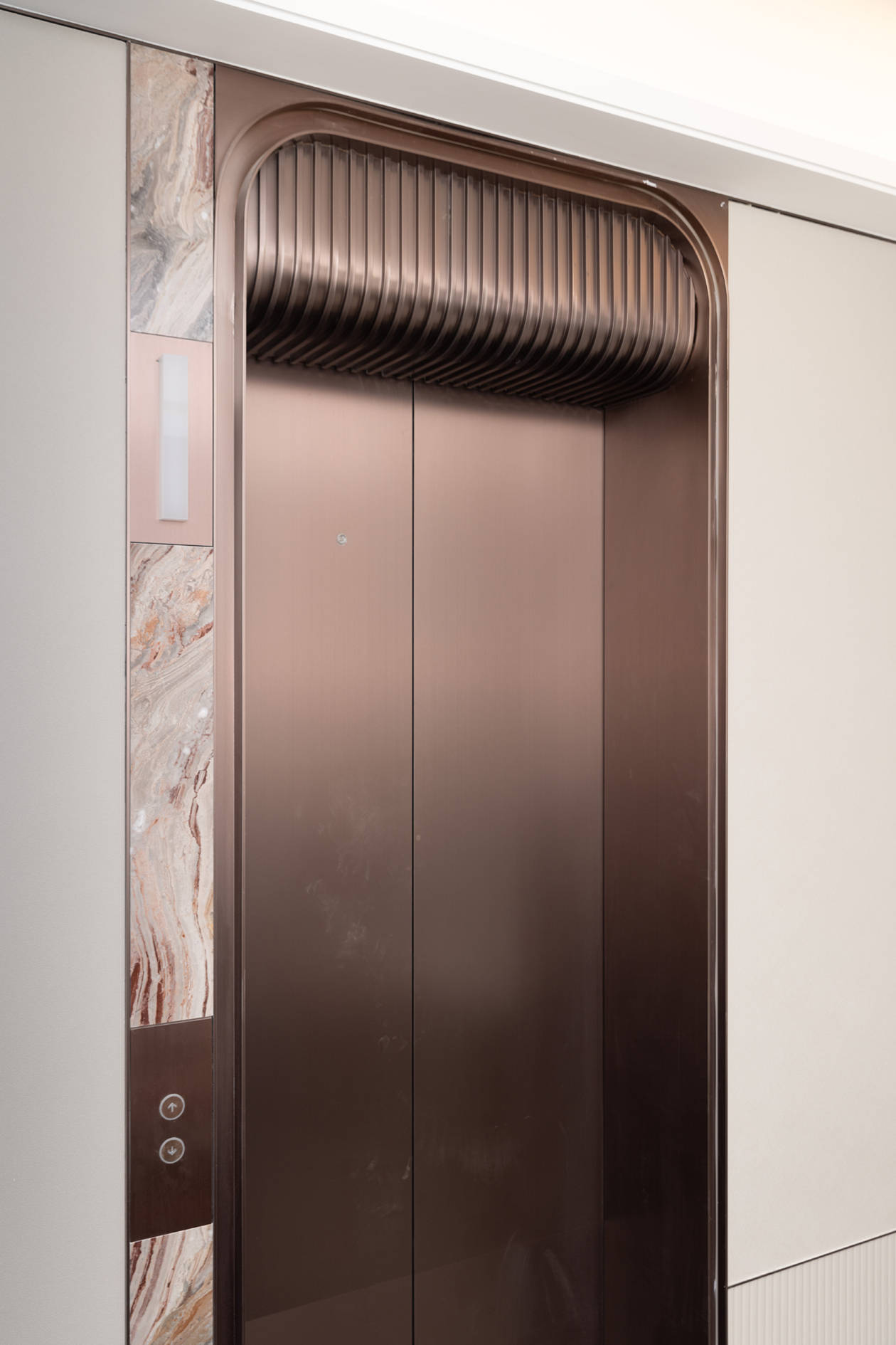 ▲以私宅标准,构建系统性交付 私宅标准延展到公区,大堂、电梯厅、电梯、入户厅四大区域一体化。 极具细腻感的精工穹顶,银河白奢石、GUCCI红、宝格丽棕、白雪公主等精致石材的运用, 让归家体验呈现出与众不同的完整和统一。