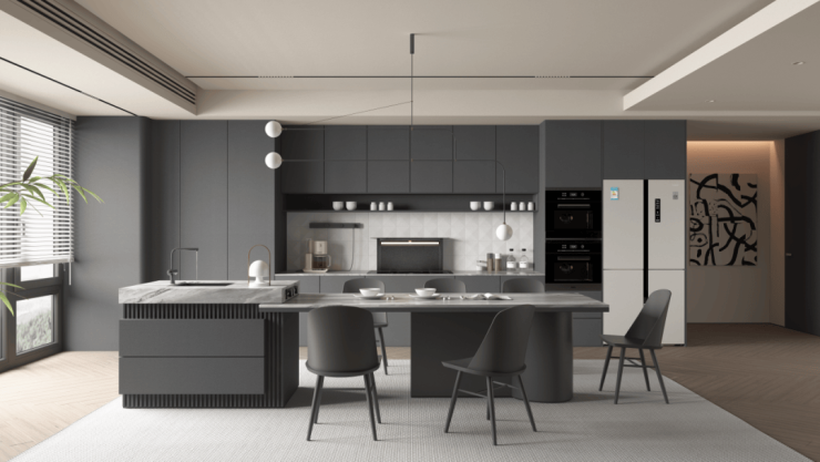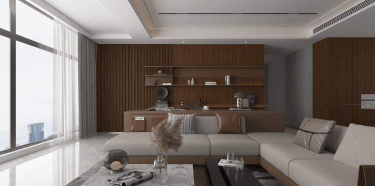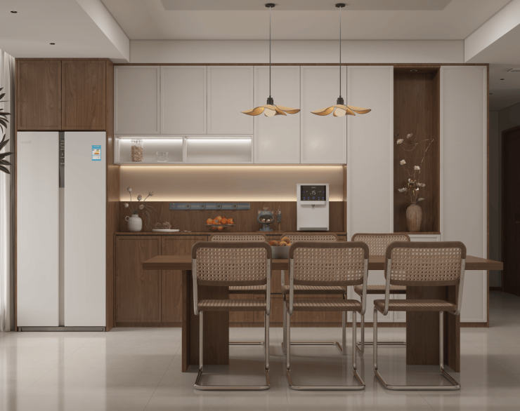 以胡桃木的包容韧性为骨,特调温润茶棕,兼具大地沉稳与琥珀通透。这种沉稳的色彩语言,营造出低调奢华、令人心安的背景,让居住者自在舒展。