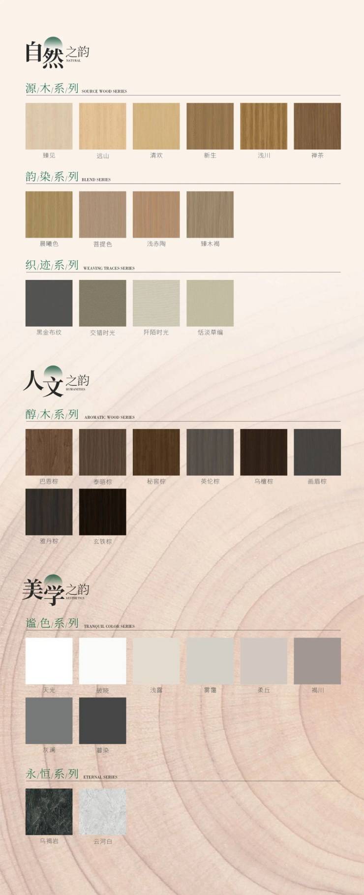 依托兔宝宝与意大利佛罗伦萨大学共建的国际协同设计平台,并联合国内龙头饰面纸品牌开发1:1定制钢板,极致还原纹理细节。这不仅是一次视觉升级,更是为当代年轻人量身定制的饰面情绪解决方案,每一款花色都蕴含着独特的情感密码,激发无限设计灵感。好了废话不多说,小编带你感受兔宝宝世界里的“万象·归心”的多彩。