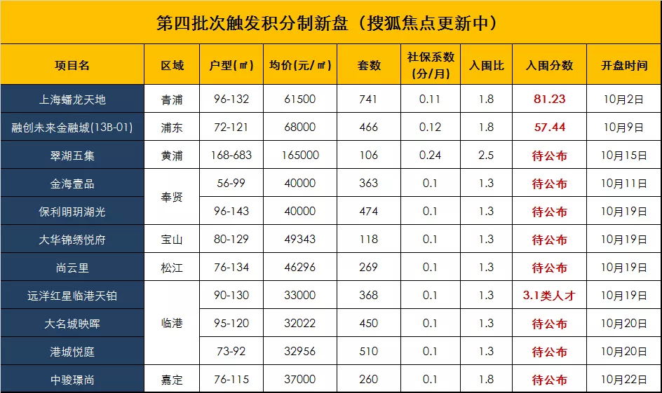 截至目前,上海新房第四批次已有2个触发积分制的新盘入围分数出炉!