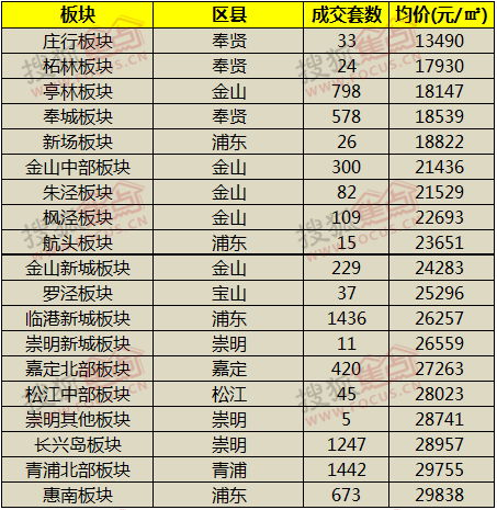 在上海楼市仅存的这些均价3万内的板块中,绝大多数都位于郊环外,全都距离市区十分遥远,且大多没有轨道交通抵达。从板块所属区域来看,金山区是“1字头”和“2字头”板块最为集中的区县,占据了五席。而“1字头”板块中,金山的亭林板块和奉贤的奉城板块分别成交了798套和578套,成为热销的低价板块。