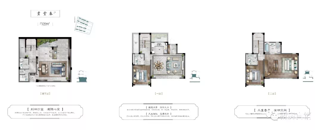 在中式院墅的打造上,加入下沉式庭院+入户庭院+露台的设计,真正意义上做到了“左邻右舍无干扰”“有天有地有花园的院落生活”;在户型上,我们设计了三开间全部朝南的设计,全天采光都非常充足,这也是国人非常理想的户型。