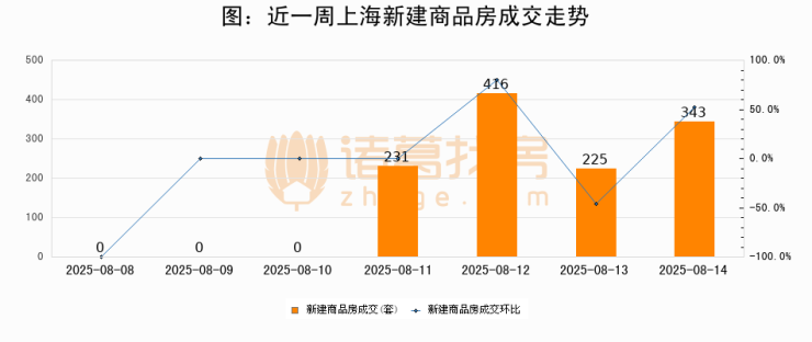 【上海成交日报】08月14日新房成交343套、二手房518套;涨价房源132套