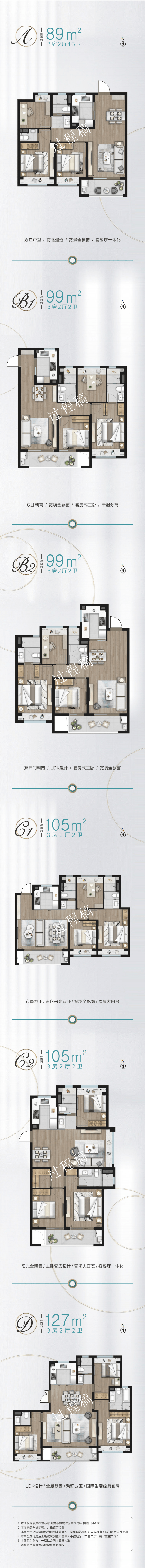 项目主力房型为约89㎡高层3房2厅1.5卫、约99㎡高层3房2厅2卫、约105㎡高层3房2厅2卫、约127㎡高层3房2厅2卫。全飘窗设计,精装/毛坯交付均有,满足不同置业需求。根据联动价计算,百平户型总价在500万左右,非常适合刚需上车。