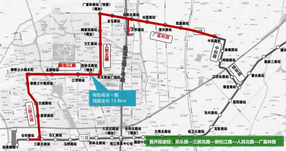 松江有轨电车一期工程全长13.9公里,设置站点19个。有轨电车项目自2015年12月28日正式开工以来,经过铺设轨道、安装道岔、接触网立杆、吊装箱变牵引变电所、变电所送电、车辆试跑等阶段,历经2年多的建设,松江有轨电车一期工程目前已经初步具备通车运行能力。