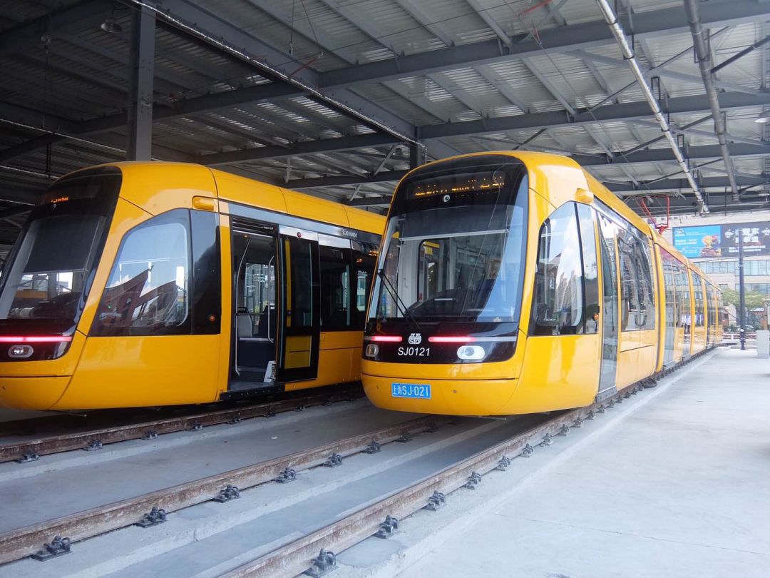 松江有轨电车示范线工程T1、T2线总长约31.24km,共设47座车站。T1线东西贯穿松江老城,并向东延伸至松江工业区及新桥镇。T2线串联了松江老城、松江新城、大学城以及松江工业区。预计今年12月底开通载客试运营。
