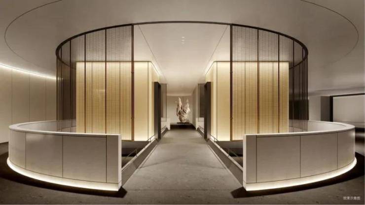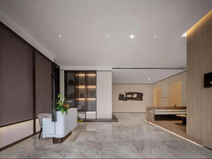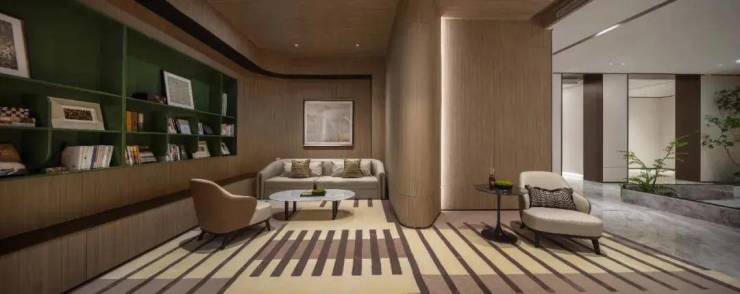 第二重首层大堂,由国内顶级设计单位无间操刀,整体呈现高级的品位感。设休闲区与软垫沙发,为稍事休息的业主或访客提供舒适的洽谈空间。