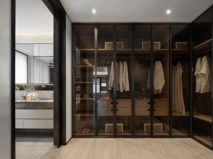步入式玄关柜支持业主个性化定制,搭配智能感应灯,为每一次归家提供满满暖意!