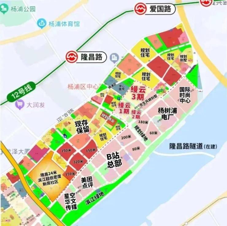 “两翼”中的南翼“动韵桥芯”片区,数字经济总部集群落地成效显著:美团上海科技中心(预计2025年底竣工)、B站总部(预计2026年3月底竣工)、抖音总部(预计2026年竣工)等正加速推进建设,总部与滨江创智中心已串珠成链,形成新质生产力“科创秀带”,预计2027年将集聚3000家在线新经济企业,实现3000亿元产值规模。