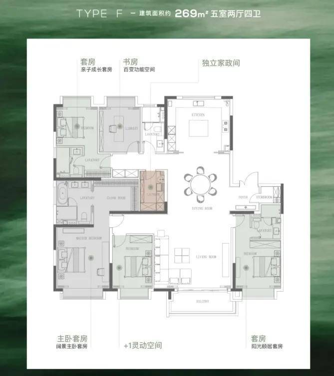 空间尺度上,约80%的得房率,高于区域竞品3到5个百分点,约9.3米面宽的超级横厅搭配三间南向套房,创下上海同面积段户型最大面宽纪录的同时,更兼具采光与通风效果;结构创新上,缦云专属的“5+1”灵动布局突破市场主流四房设计,可根据家庭需求灵活调整空间功能,风格独树一帜。