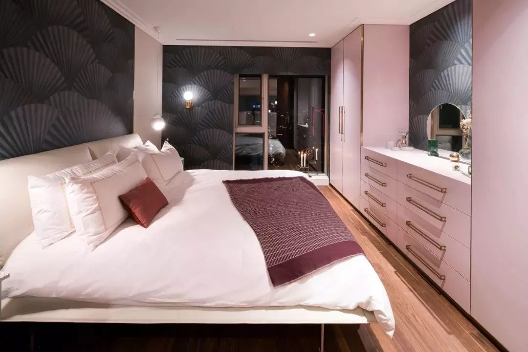 客厅整体让人感觉更男性化,所以更衣室或者卧室的设计就会偏女性化一些。