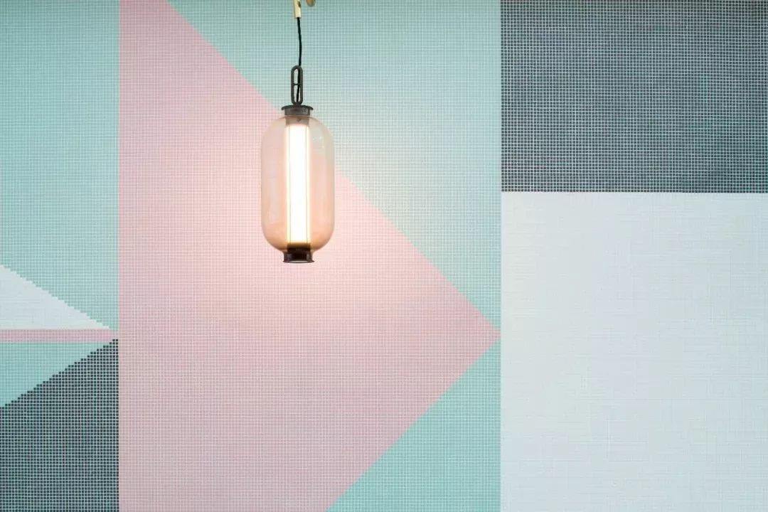 像这种绿色,粉色来装饰马赛克,让人感觉到一种清凉与舒适,也符合泳池的功能与氛围。