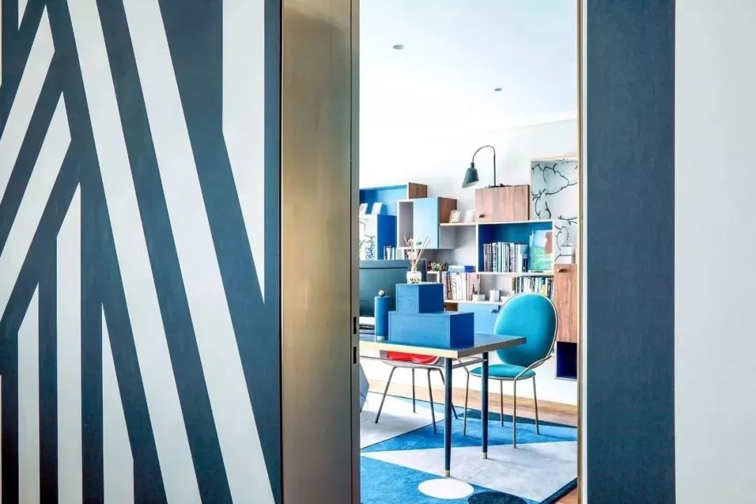 色彩和功能搭配也很有讲究。房间的颜色会影响人的心情,所以卧室我也使用了令人放松的蓝色。